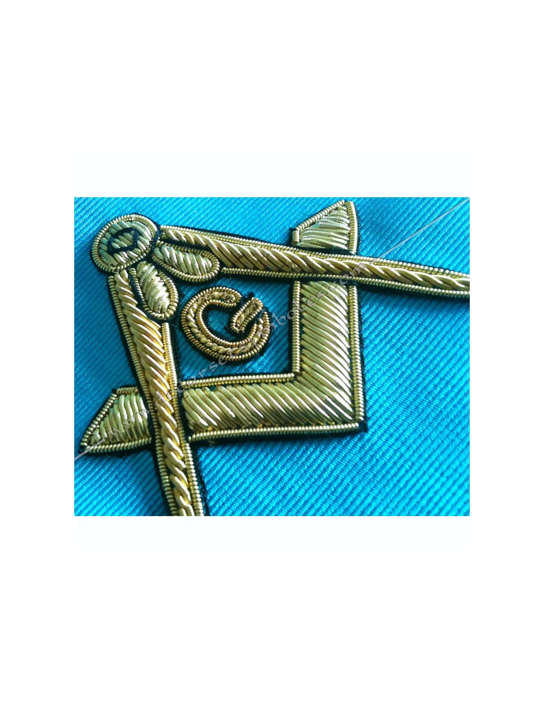 Embroidery: gold square and compass with letter G