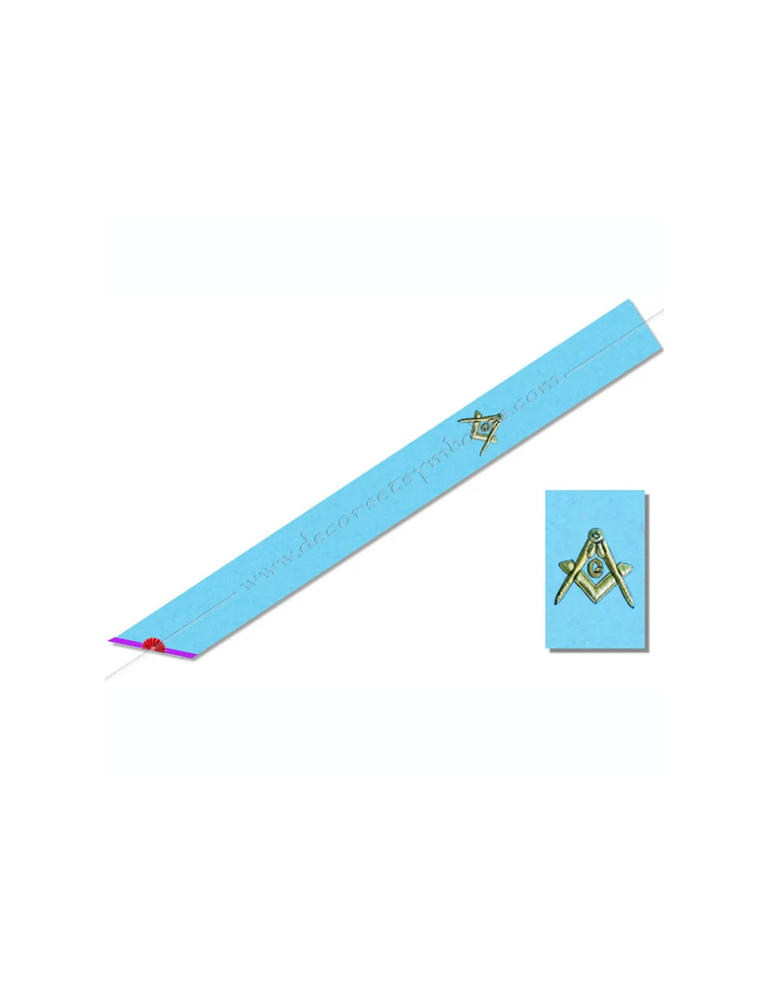 Memphis Misraim Masonic sah in turquoise moiré ribbon with 1 cm purple edging