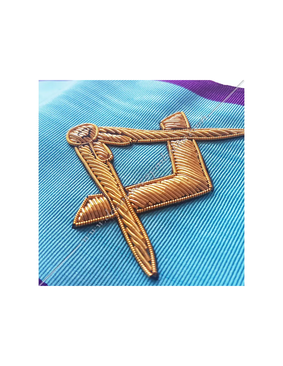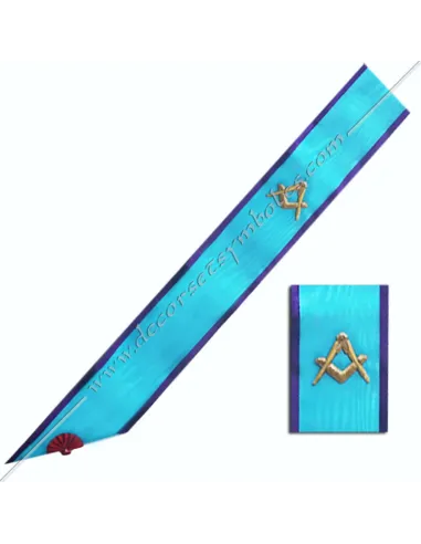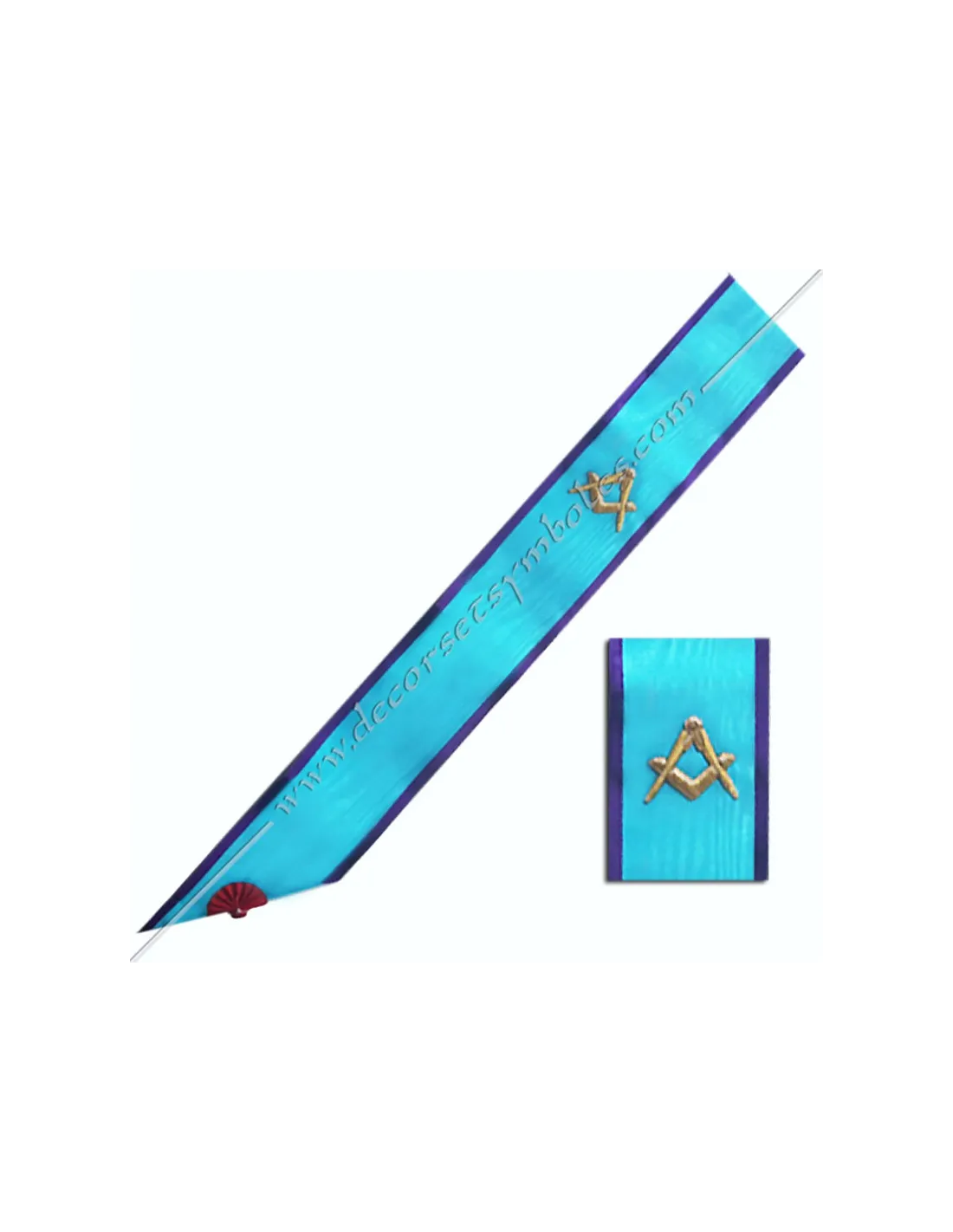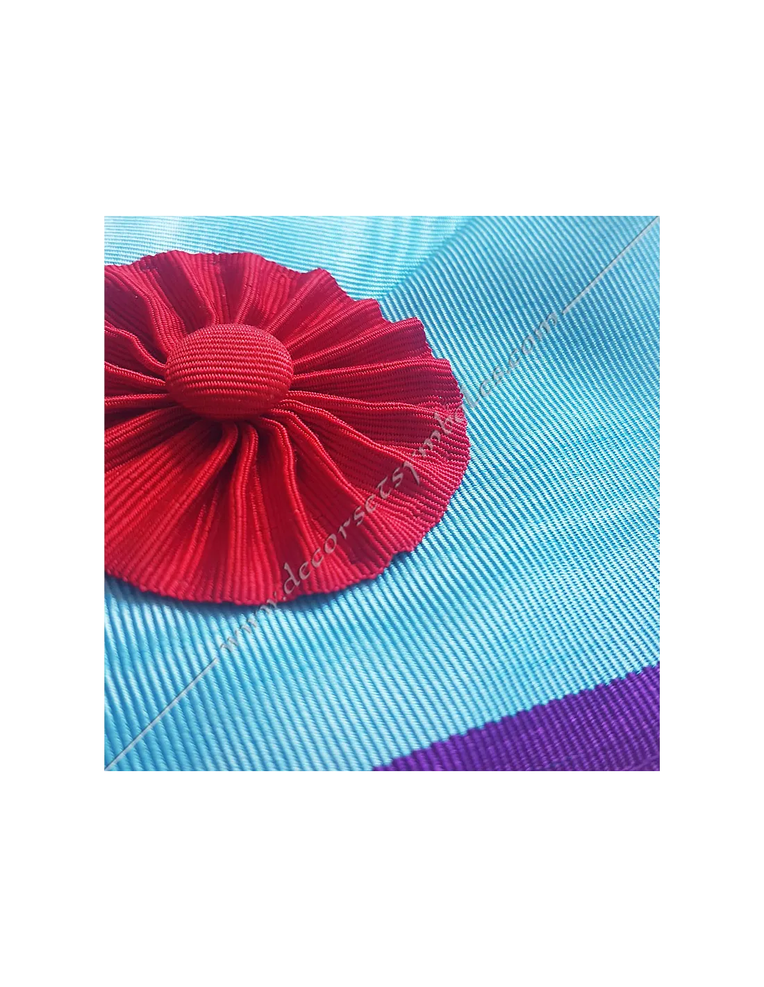 Master Masonic sash Memphis Misraim in turquoise moiré ribbon with purple edging and borders 1 cm wide