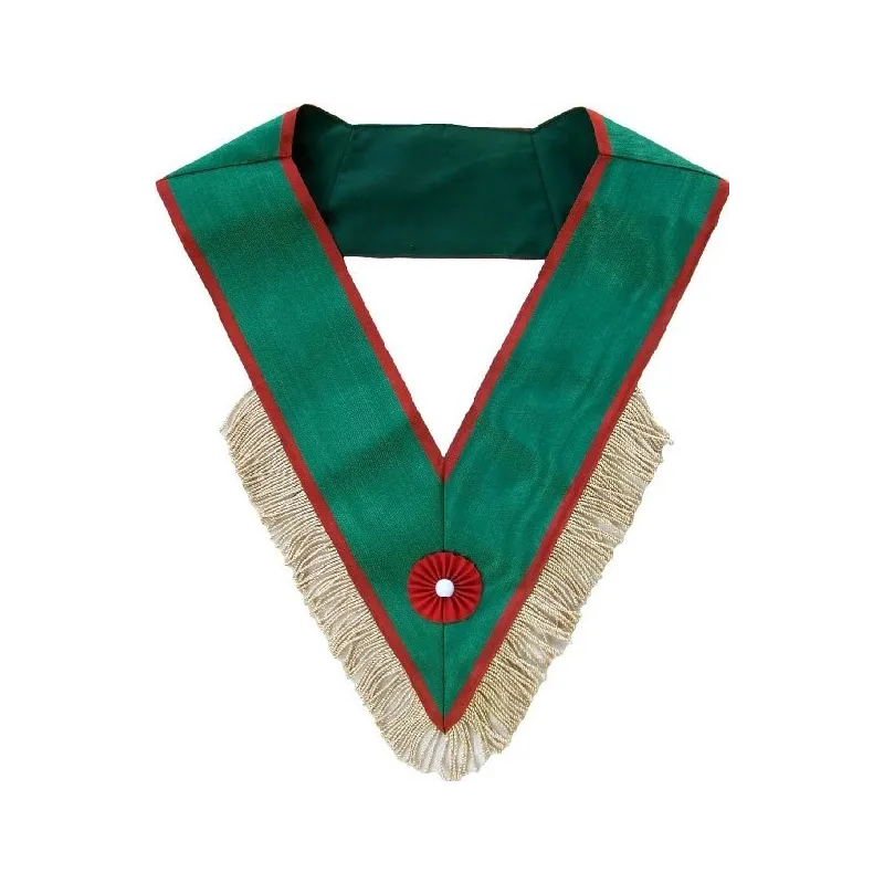 Masonic Regalia Collar made on Green moiré (watermark) ribbon with red border and golden fringes