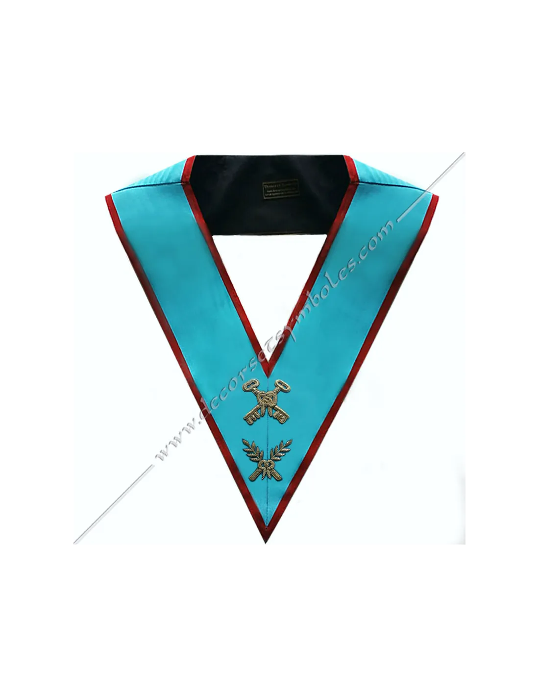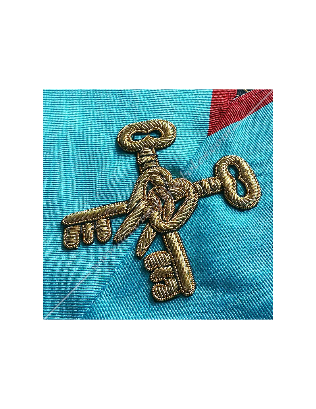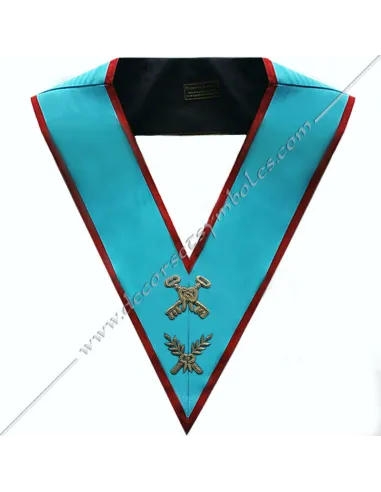 Turquoise moiré ribbon with red edging for a masonic AASR treasurer officer's collar