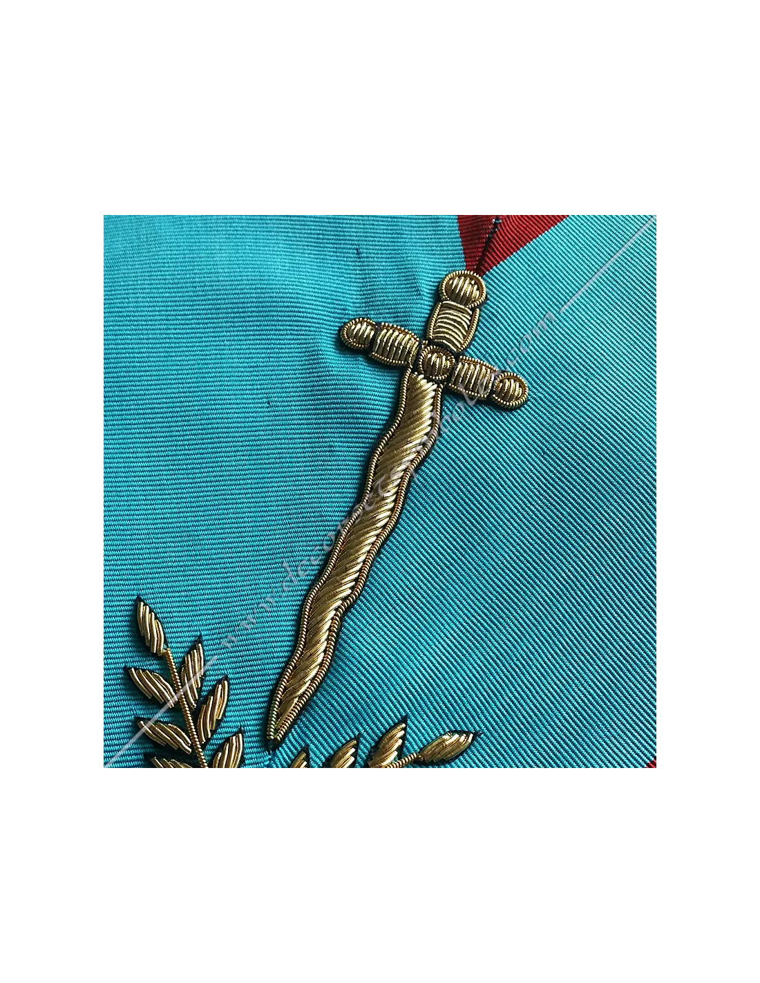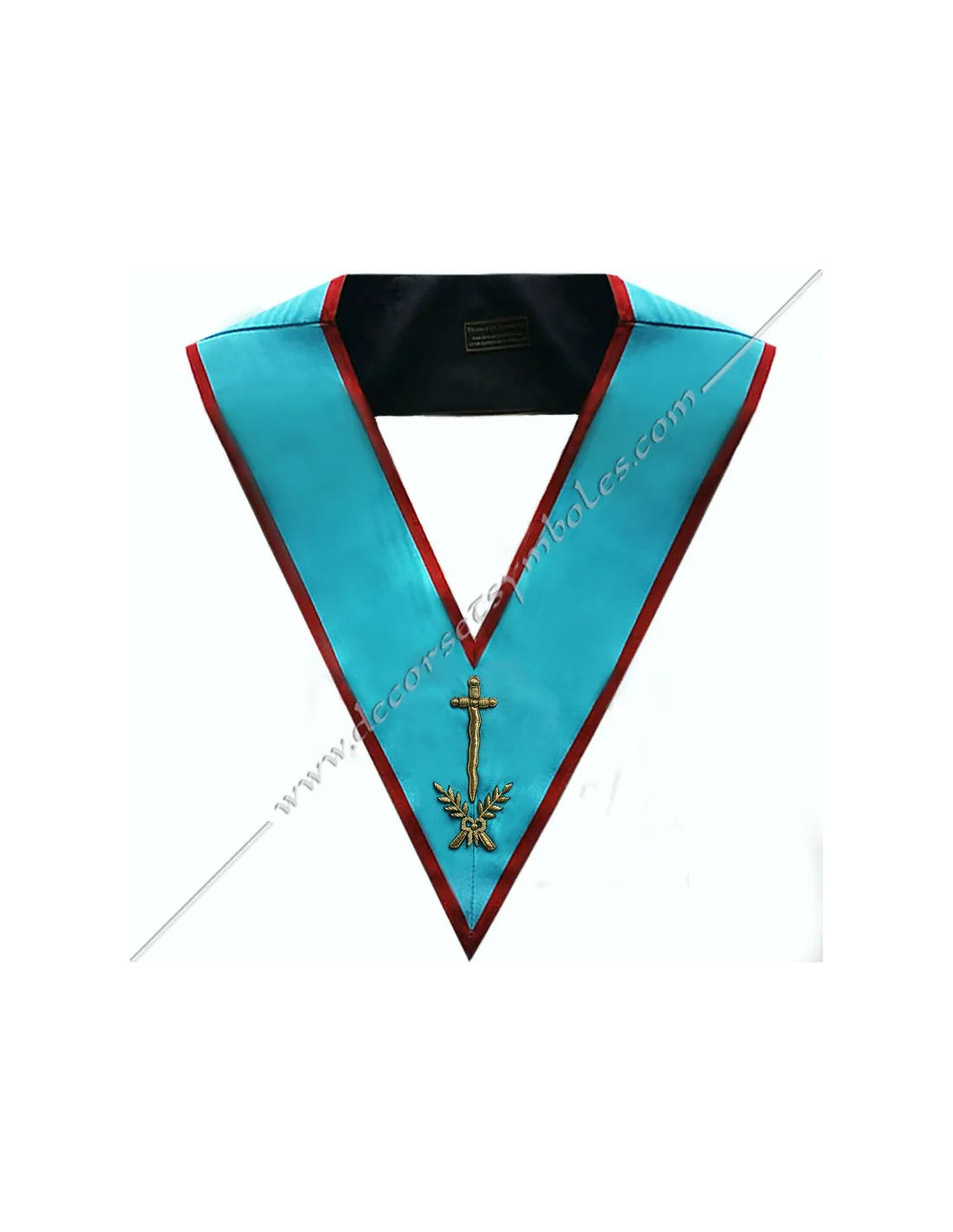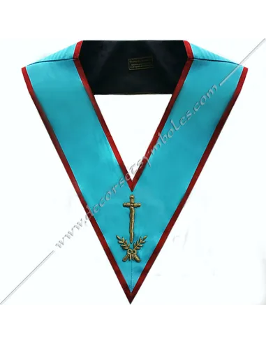 AASR Roofer officer's masonic collar in turquoise moiré ribbon with red edging