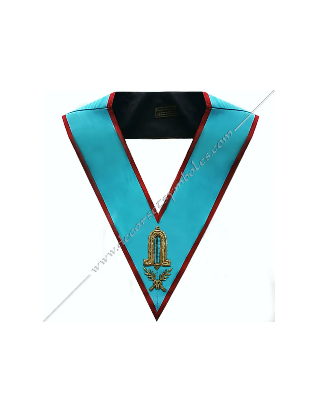 Turquoise moiré ribbon with red edging for a masonic AASR Second Guard officer's collar