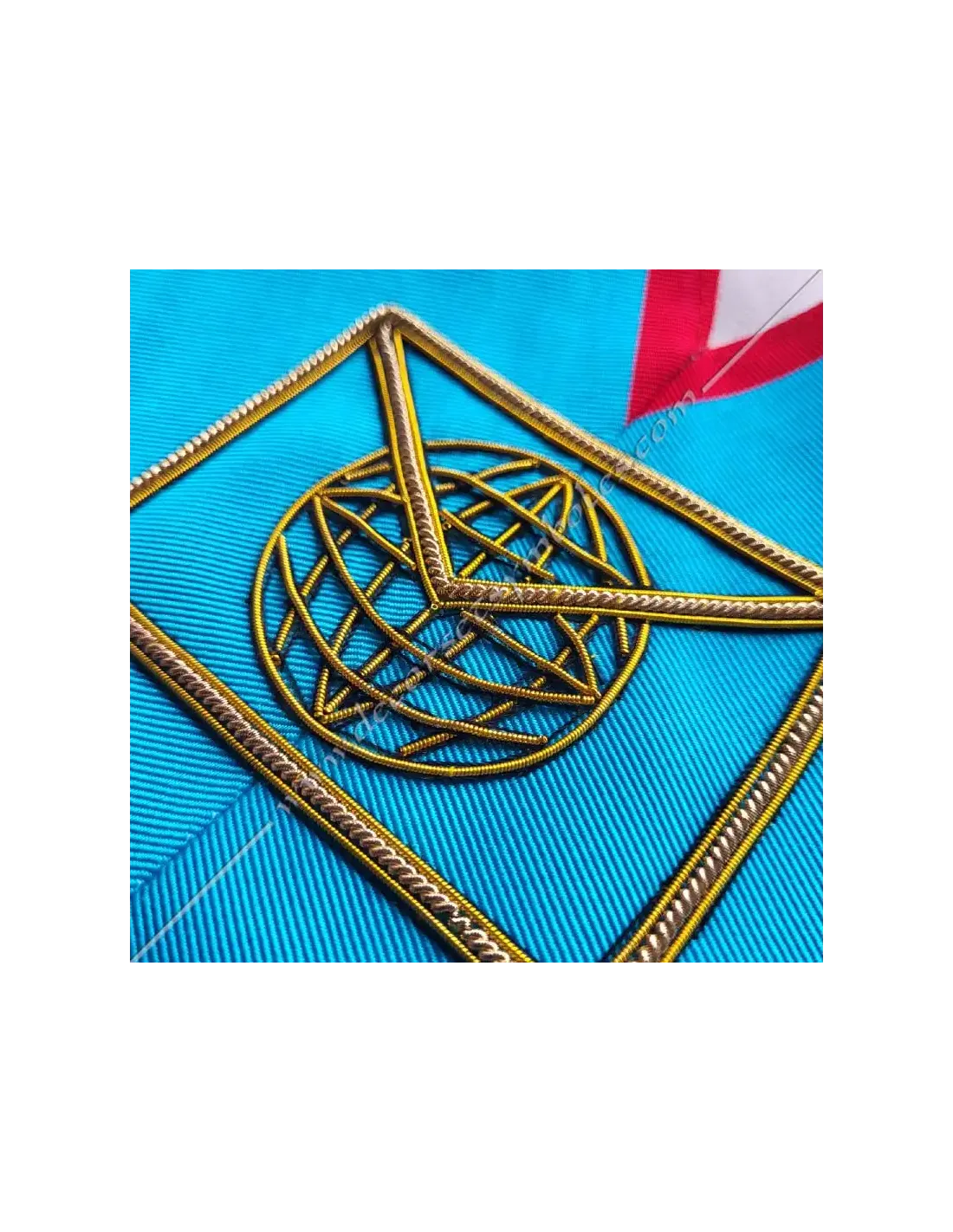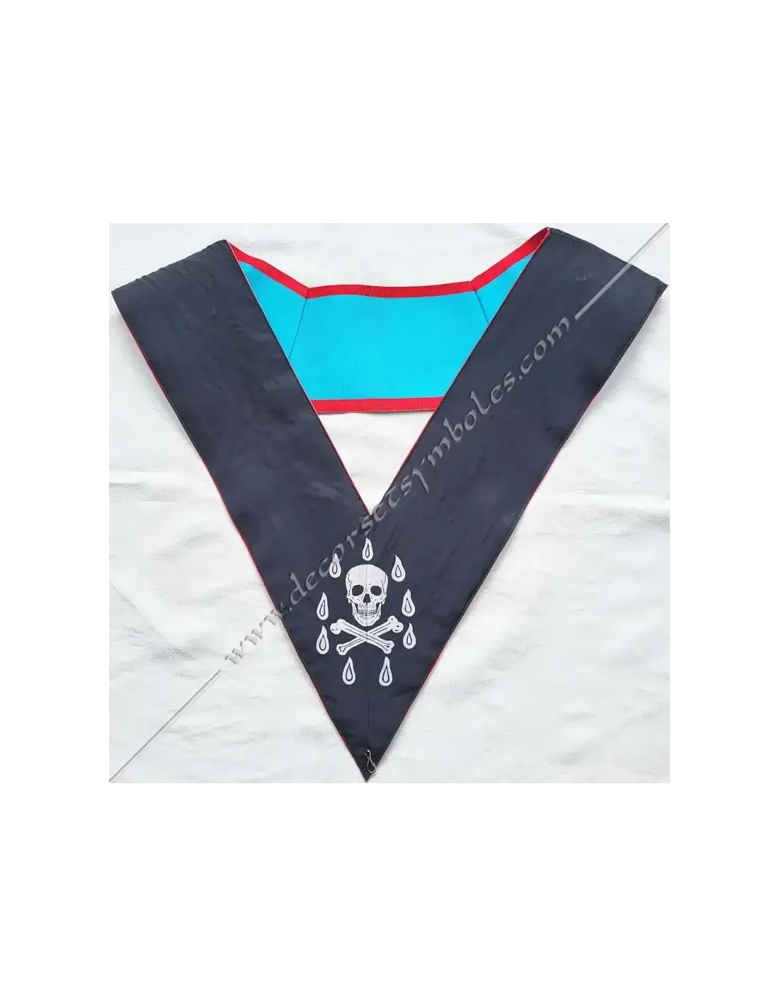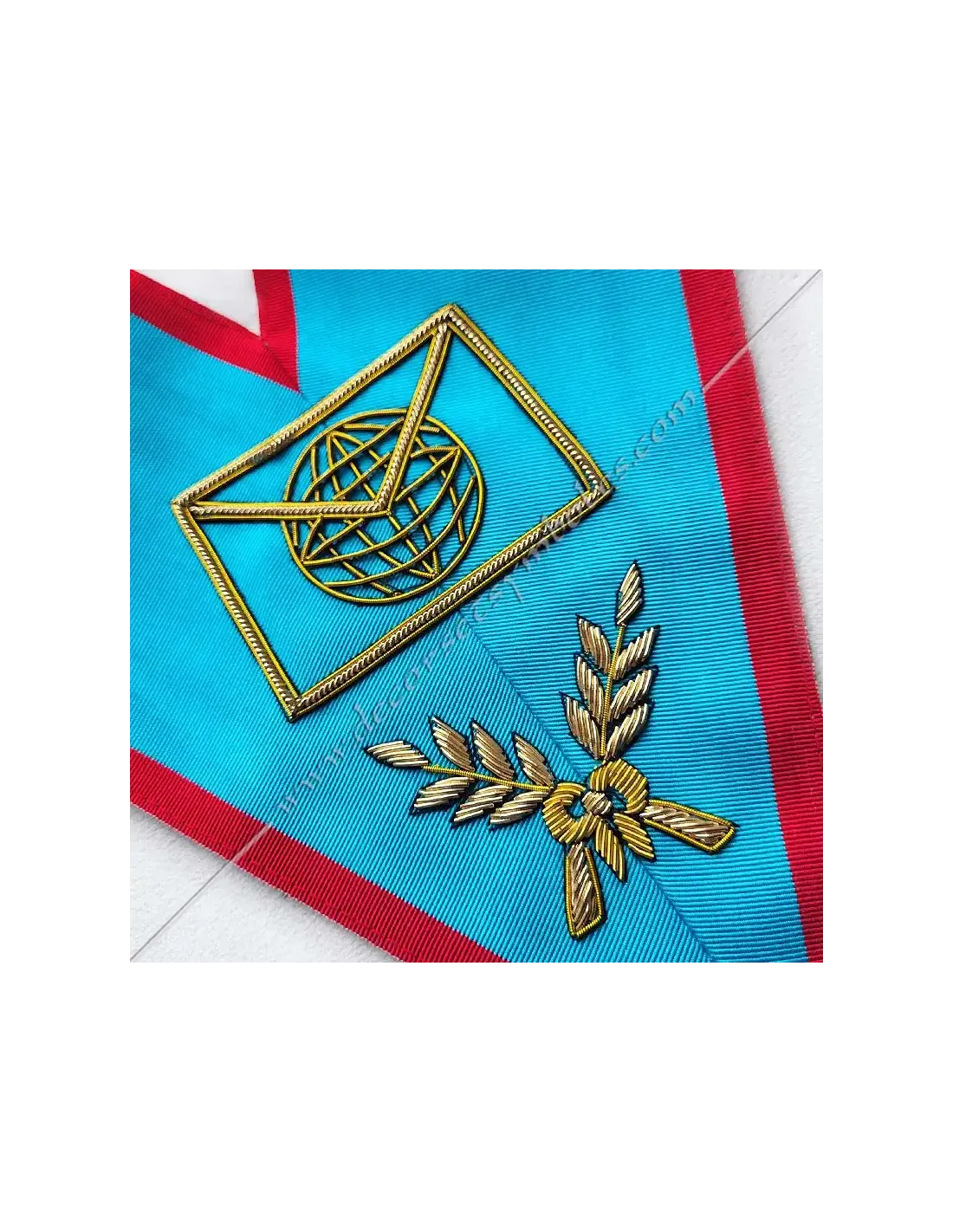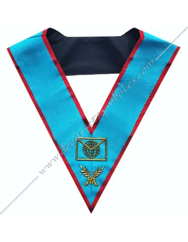 Master of the Web or Webmaster of the AASR Masonic officer's long necklace in turquoise moiré ribbon with red edging
