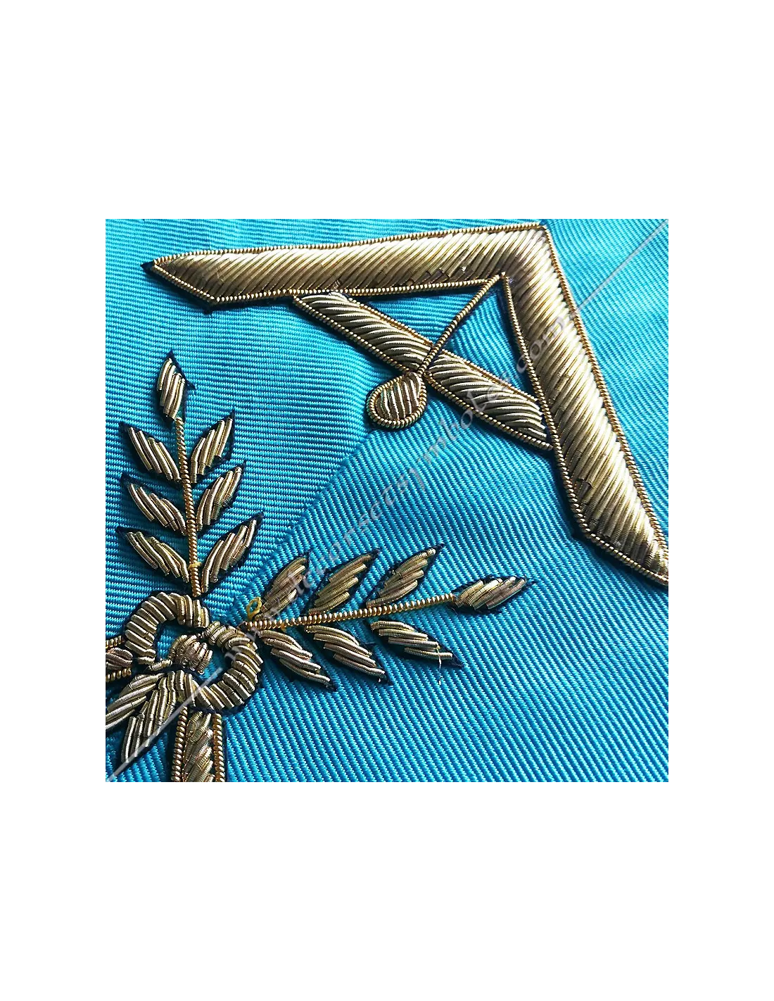 Turquoise moiré ribbon with red edging for a masonic AASR first guard officer's collar
