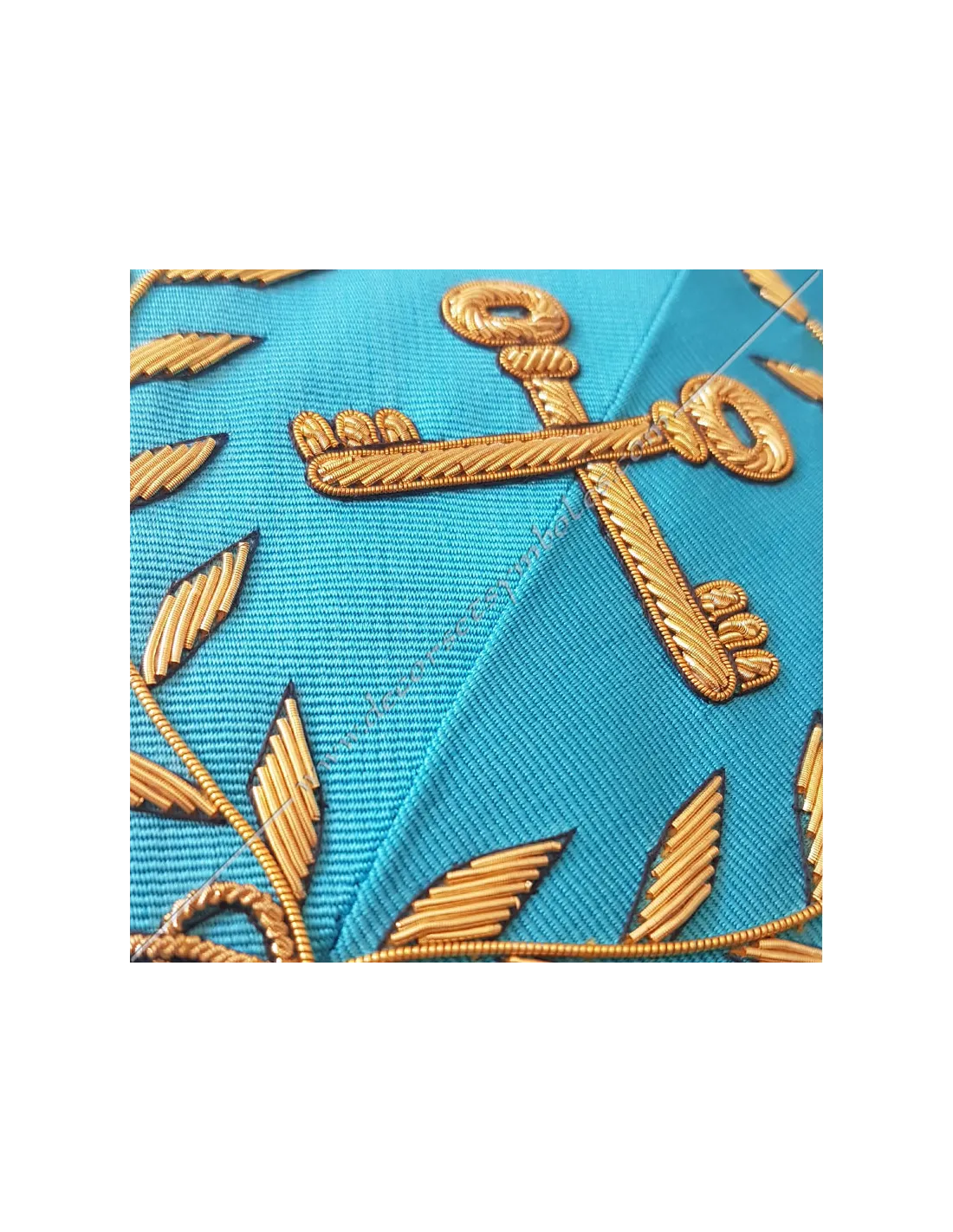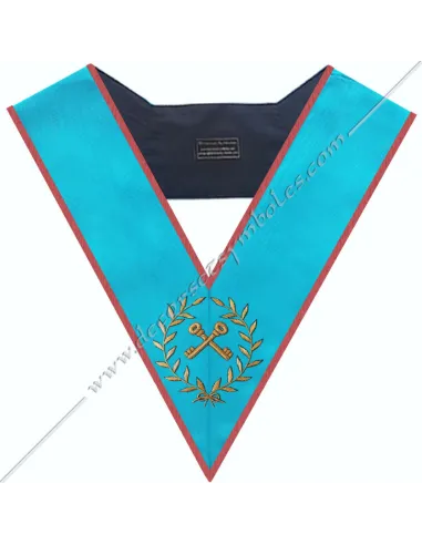AASR masonic treasurer officer's collar in turquoise moiré ribbon with red edging