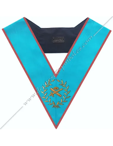 AASR masonic expert officer's collar in turquoise moiré ribbon with red edging