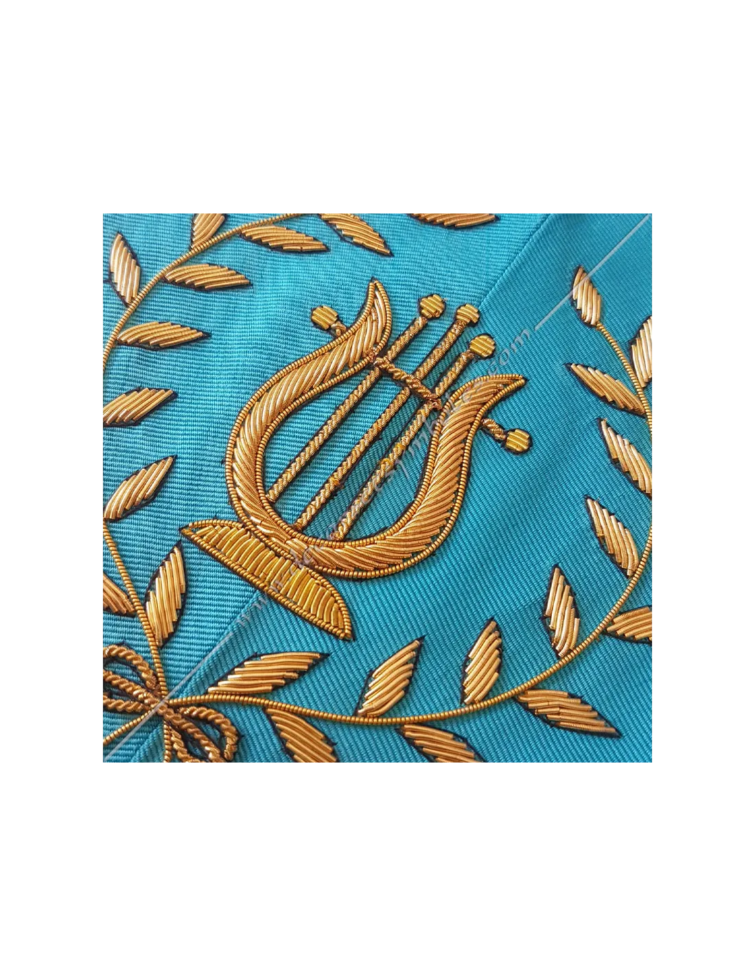 AASR masonic music master officer's collar in turquoise moiré ribbon with red edging