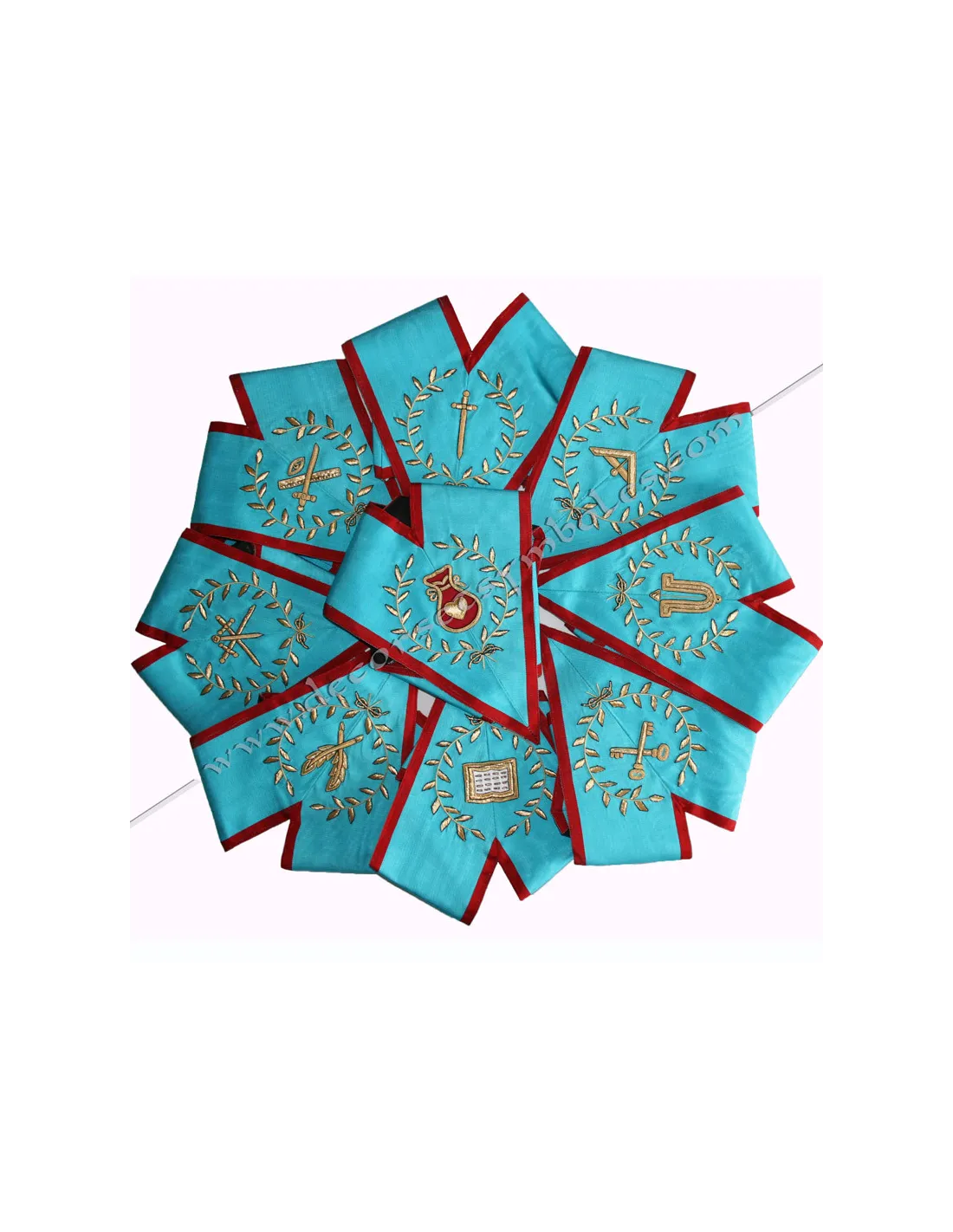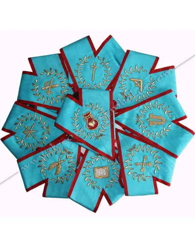 AASR officer's masonic collars in turquoise blue moiré ribbon with red edges