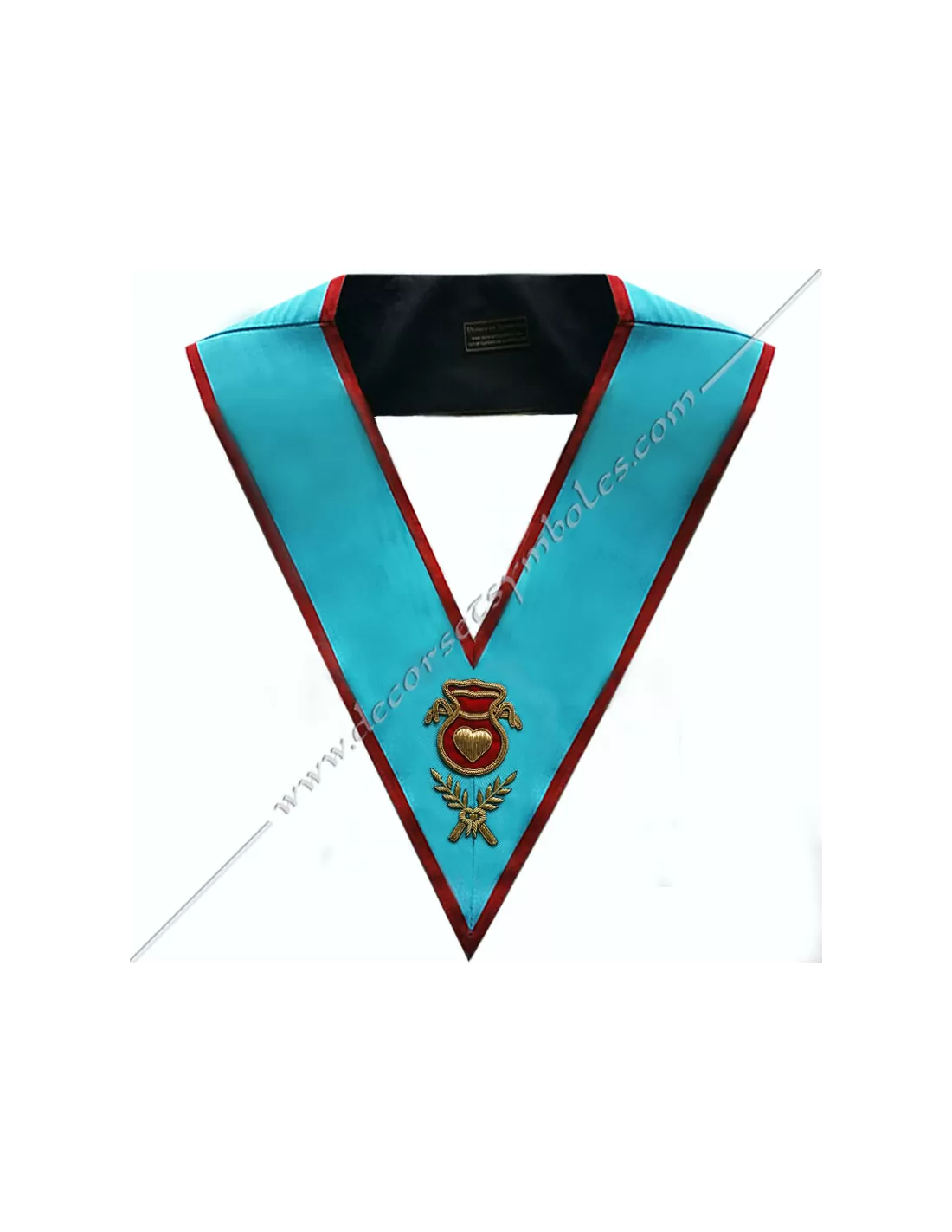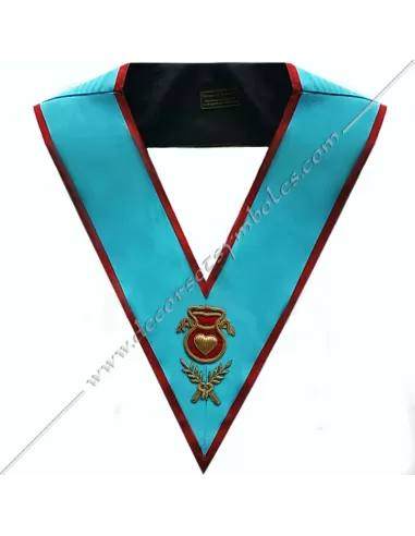 AASR officer's masonic collars in turquoise blue moiré ribbon with red edges
