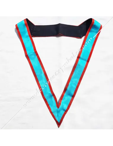 Masonic AASR collar or sash in turquoise moiré ribbon with red edging