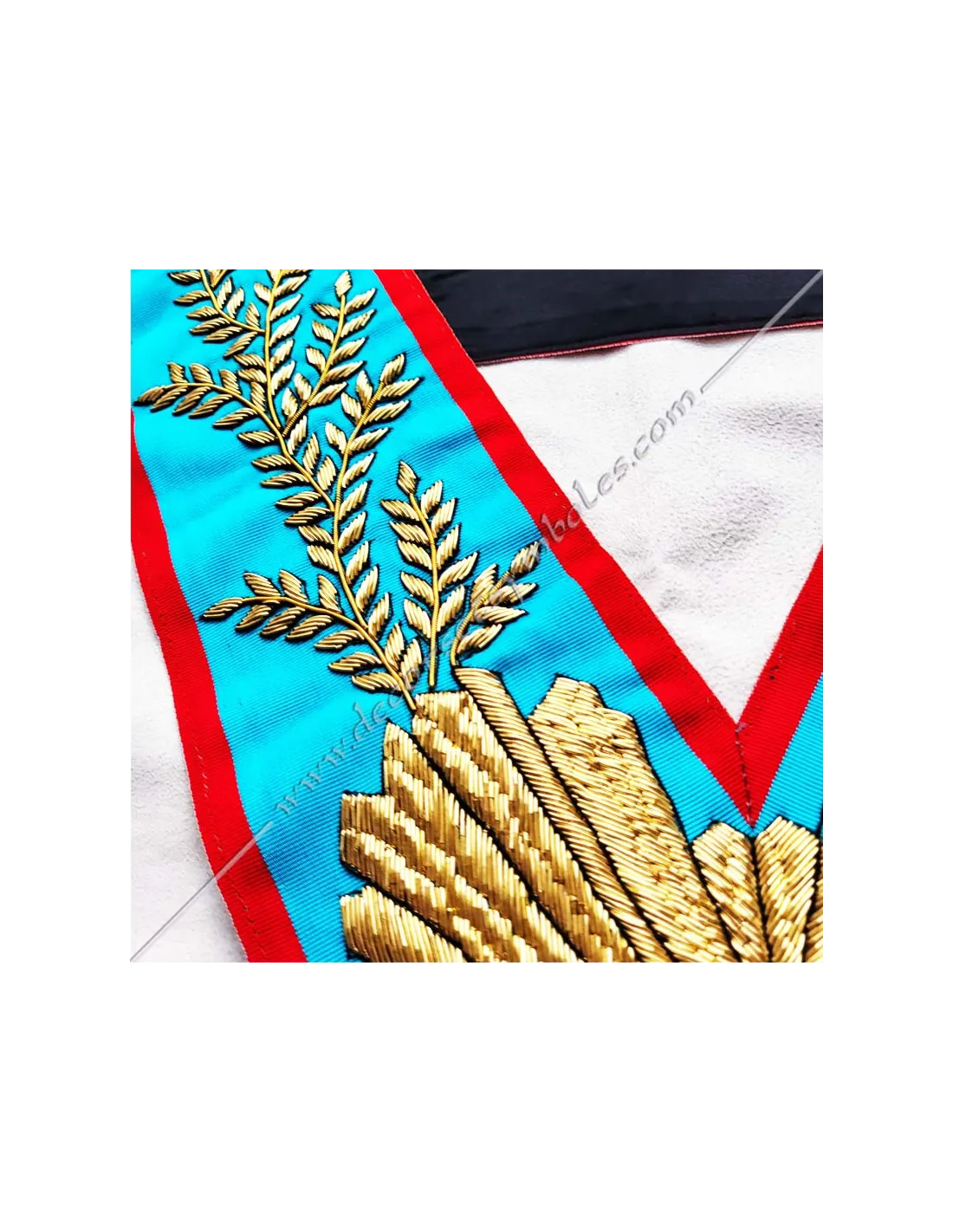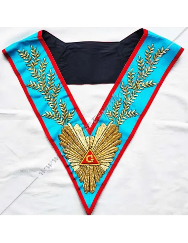 Worshipful Master of the AASR masonic collar in turquoise moiré ribbon edged in red