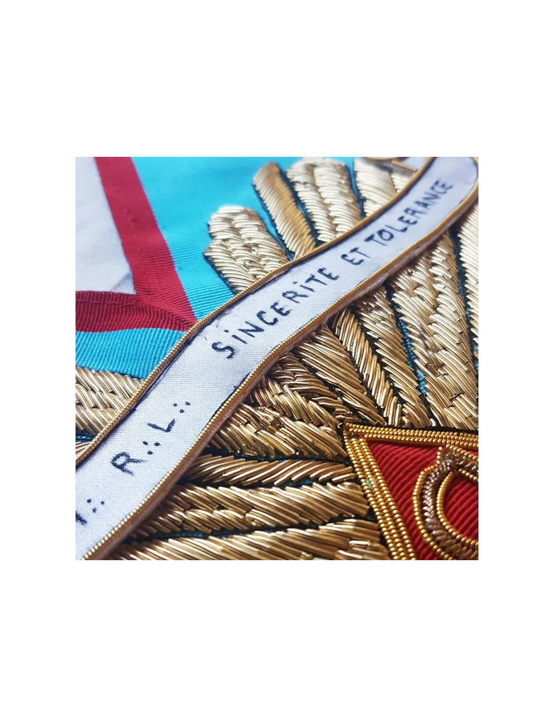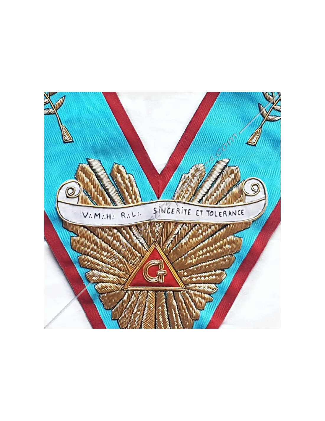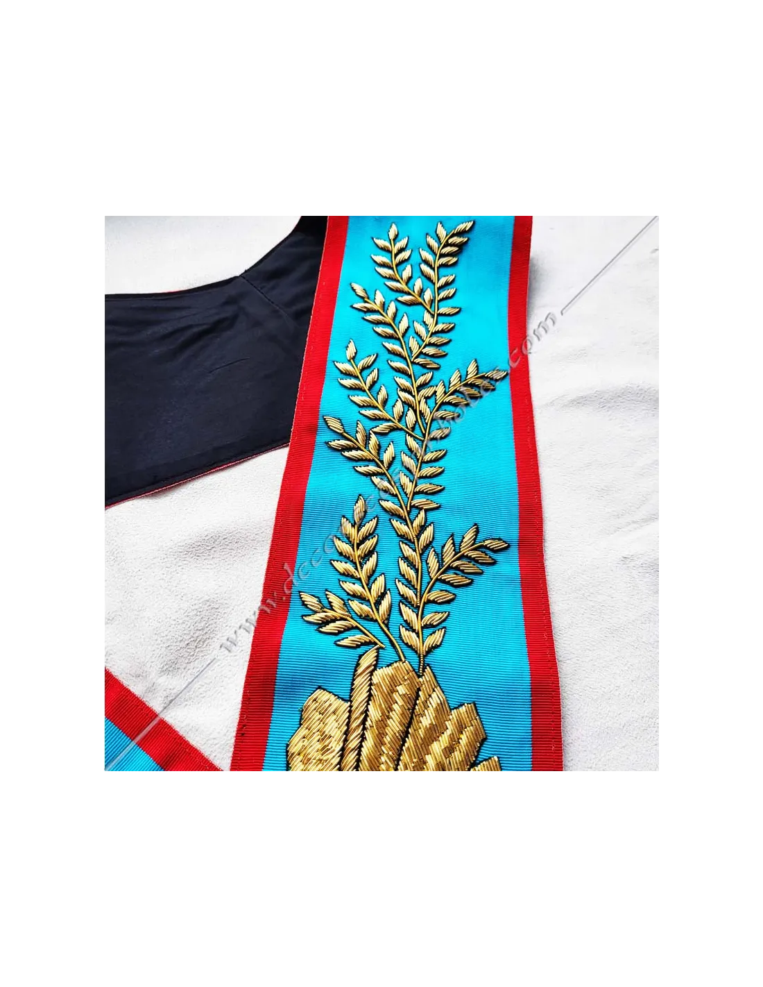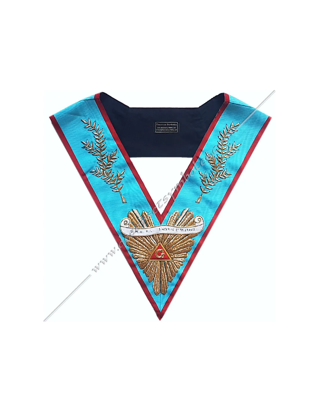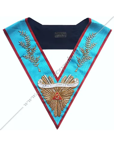 Turquoise moiré ribbon masonic collar for the Worshipful Master of the AASR with red border