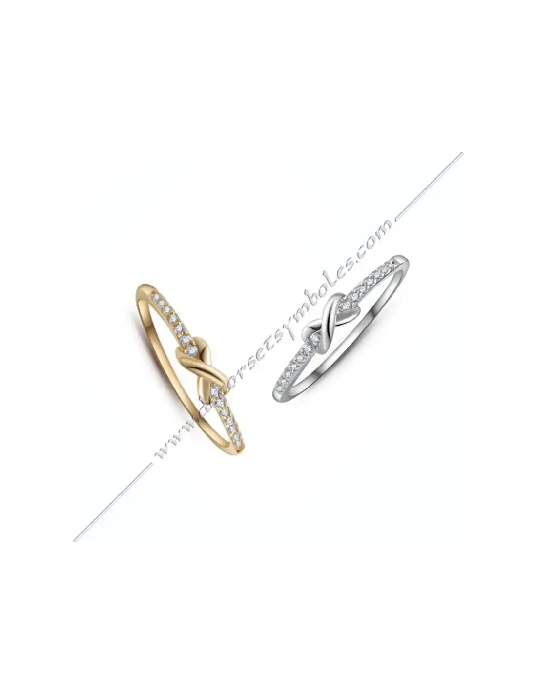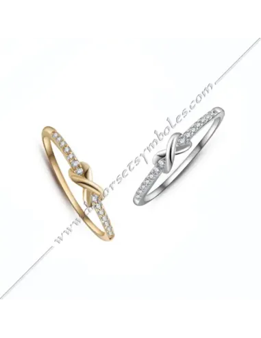 Infinity masonic ring in fine yellow, pink or white gold with zircon rhinestones and lake of love symbol