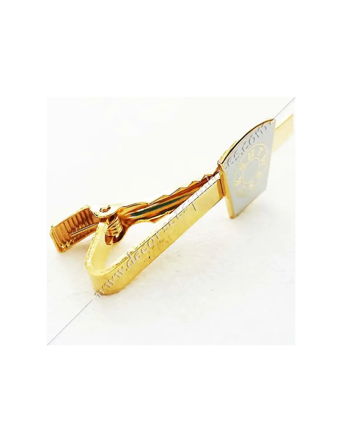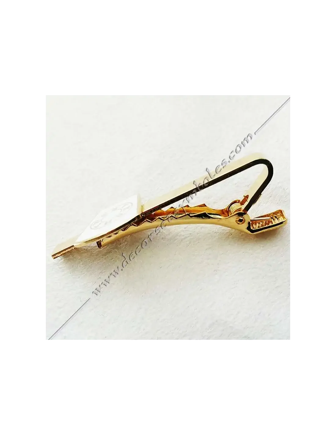 Masonic tie pin in stainless steel, gold plated and white enamelled