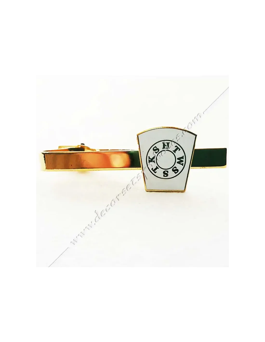 Masonic tie pin gilded in fine gold and enamelled white with the symbol of the La Marque and the inscription WSSSTKSHT