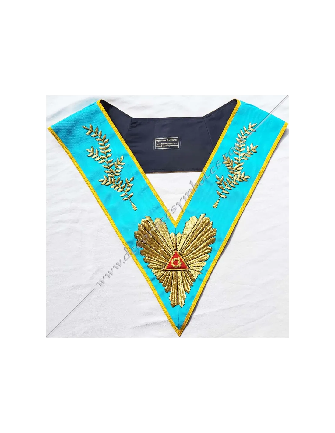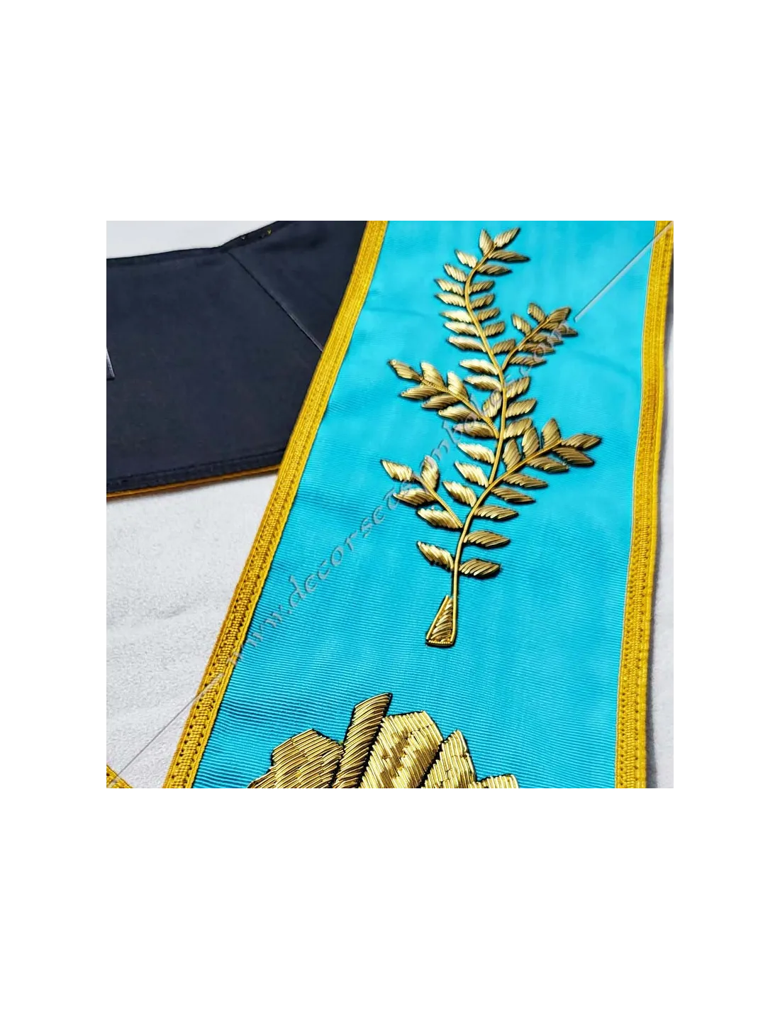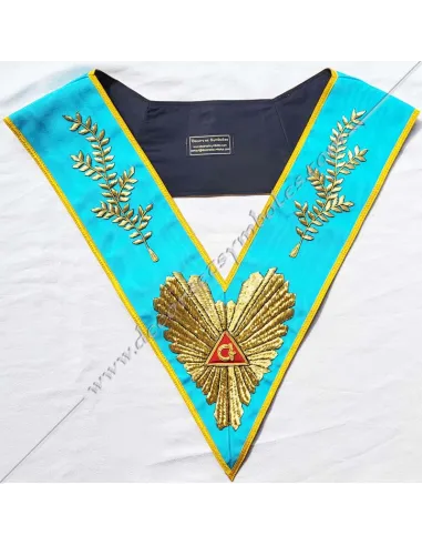 Worshipful Master's masonic collar in turquoise blue moiré ribbon