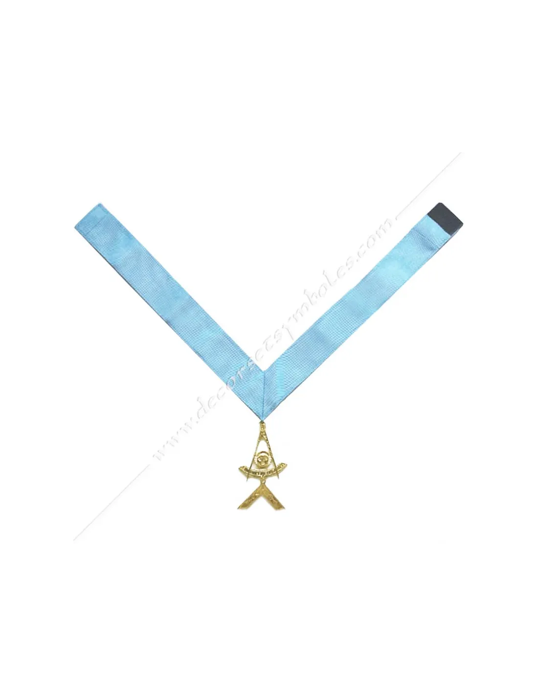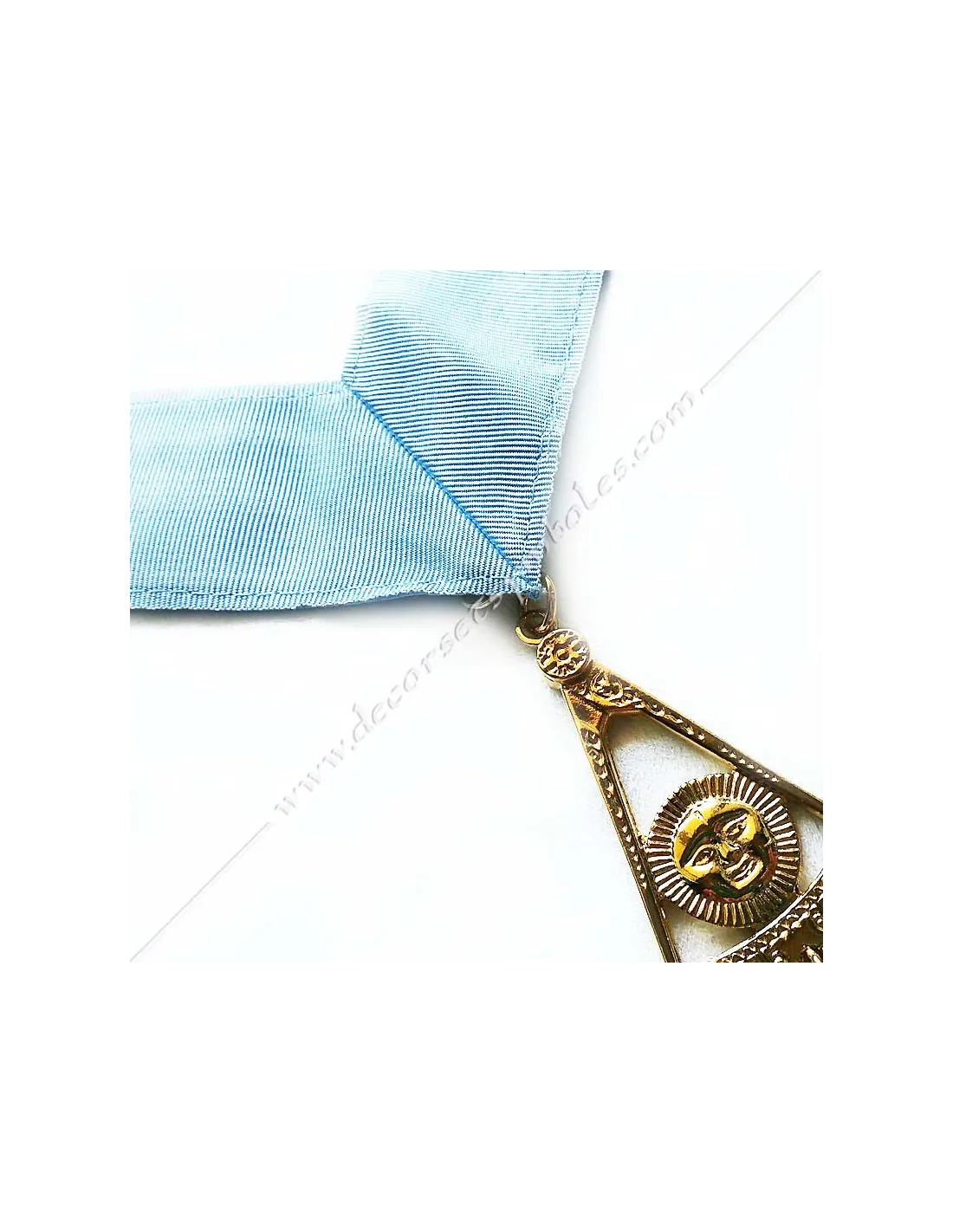Masonic collar, sash or ribbon of WMI of the French Traditional Rite in light blue moiré ribbon