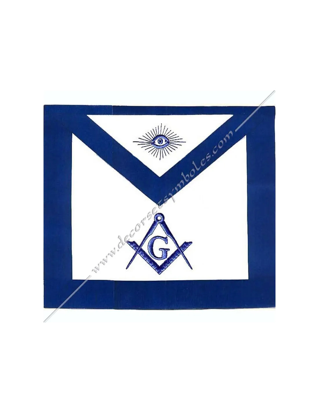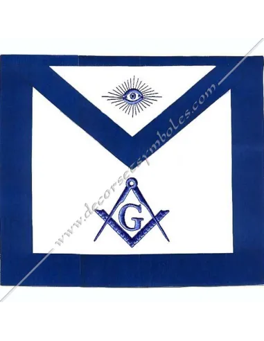 York Rite Masonic apron in imitation leather edged in blue with square and compass embroidery with letter G and eye on bib