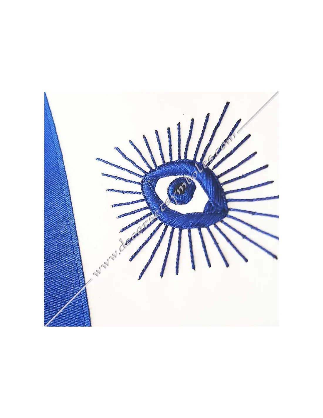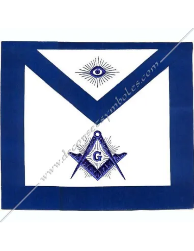 Embroidery: square and compass with blue letter G and blue eye on bib