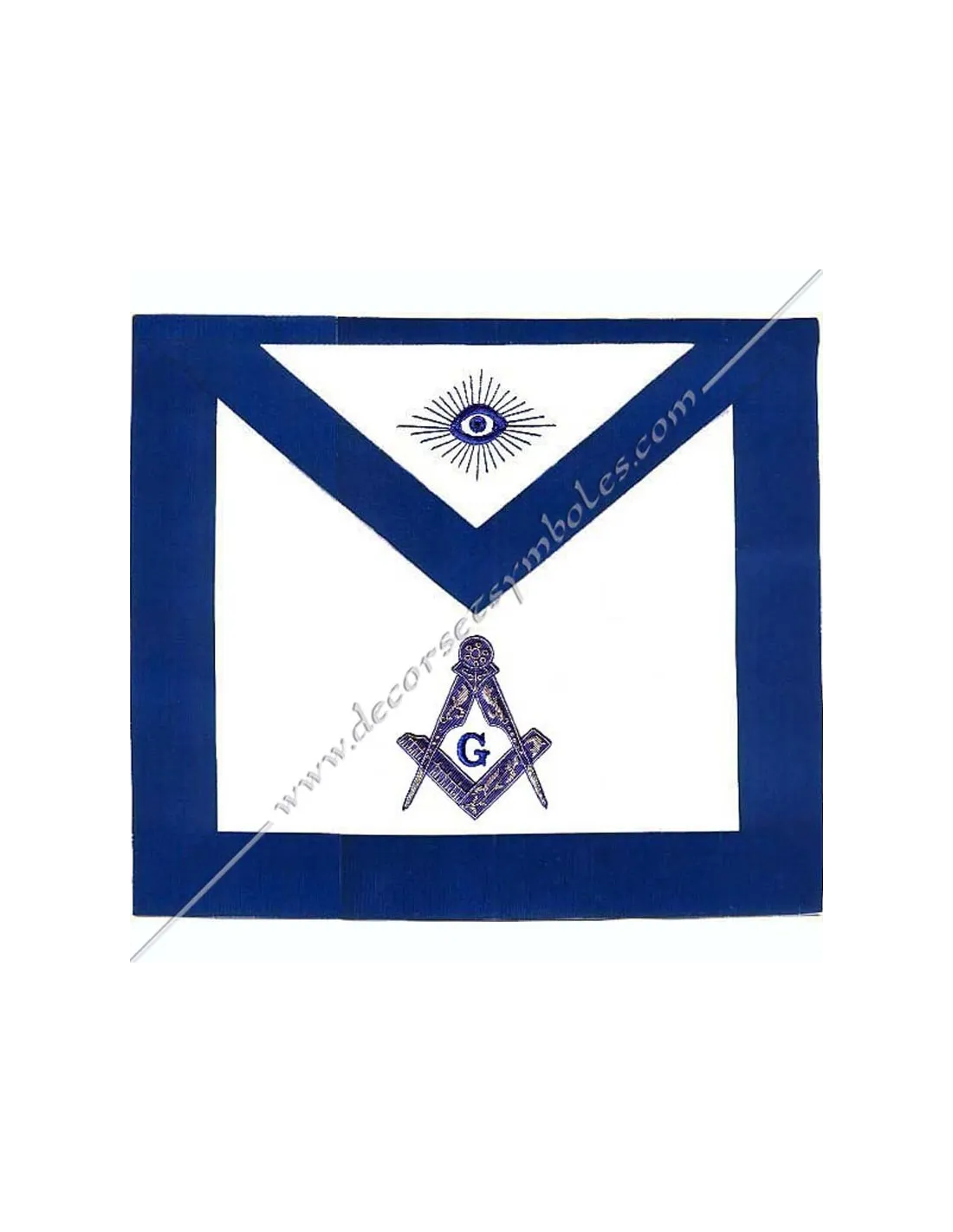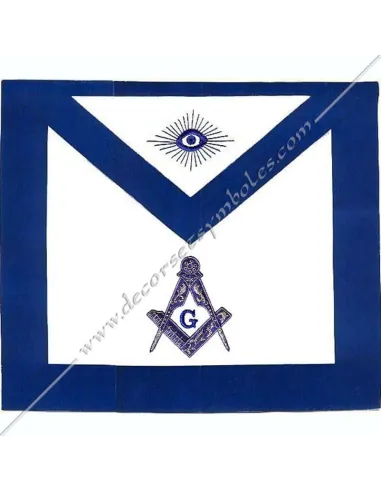 Embroidery: letter G in square and compass edged in silver and eye on bib