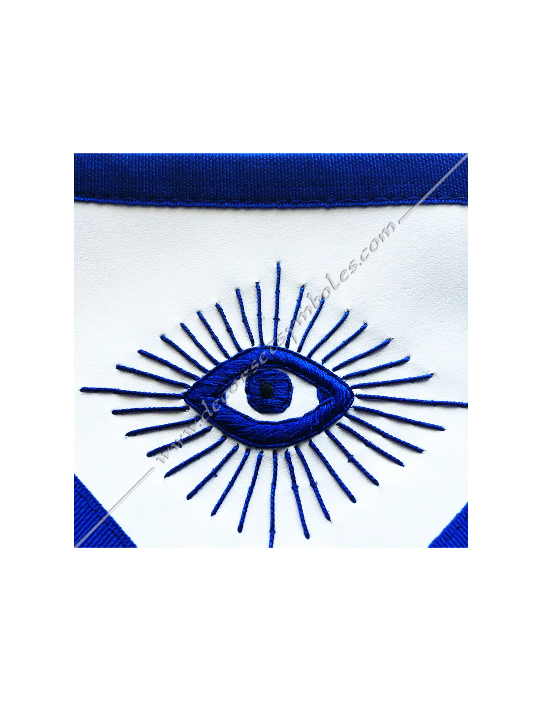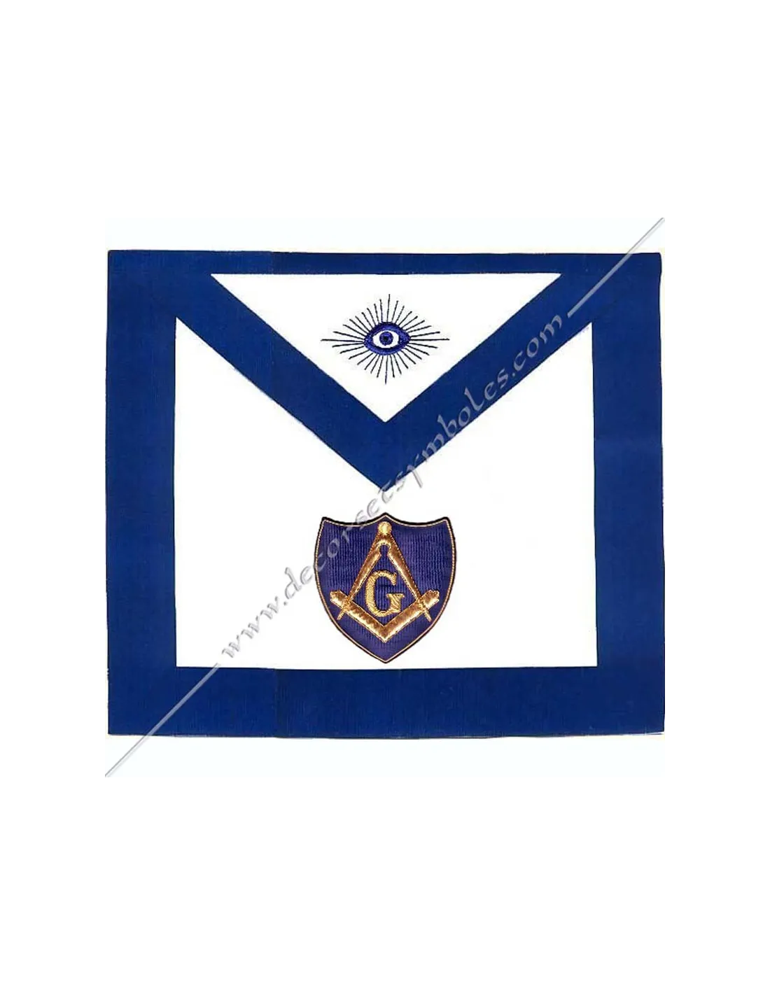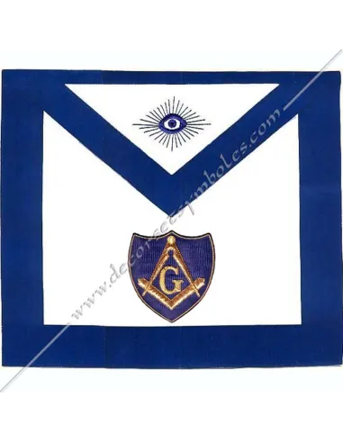 Embroidery: letter G in square and compass Gold on blue coat of arms and eye on bib