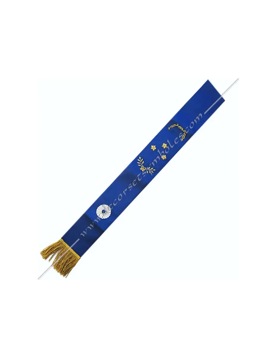 Royal blue moiré ribbon masonic scarf or sash for masters of the R.O.S.